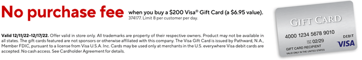 Every two weeks or so, Staples offers a promotion for Visa/Mastercard Gift Cards waiving the usual 6.95 activation fee. There is typically a daily limit of eight card purchases per customer per day.